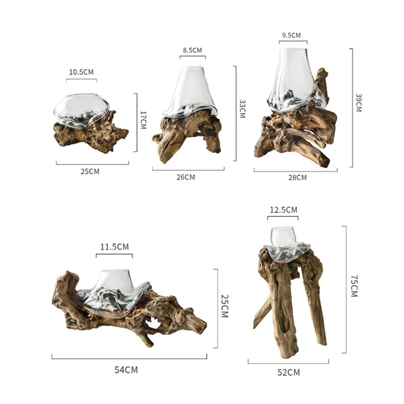 Brand Name: Glass Bonsai Vase Dead Wood Rack Hydroponic Planting Pots Flowerpot Art Wooden Frame Terrarium Home Decoration Accessories